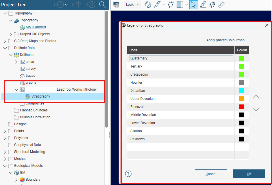 To find out which lithologies you are using and from which boreholes, you can check as follows: