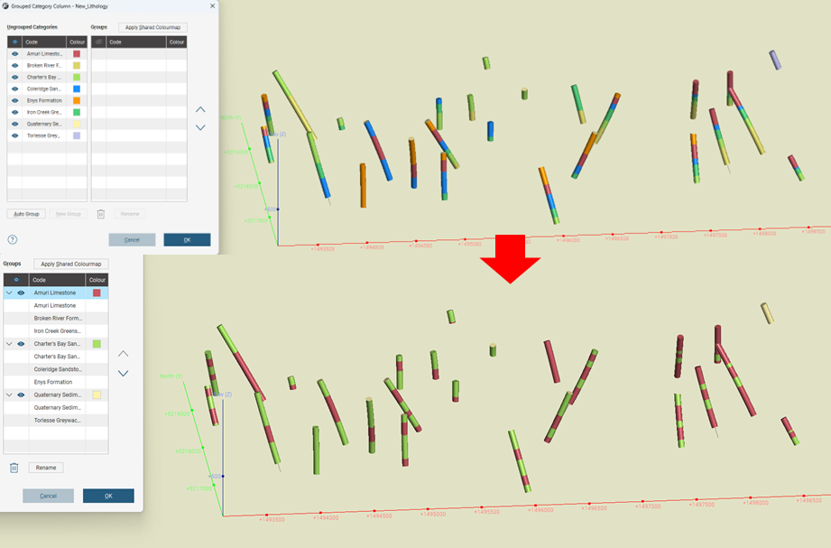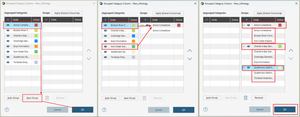 Next, select one of the lithologies from your surveys and click on “New Group” to create the new lithological group, then repeat with the lithologies you want to combine.