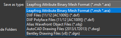It looks like the file type options are consistent with Leapfrog Works. Is this what you are using?