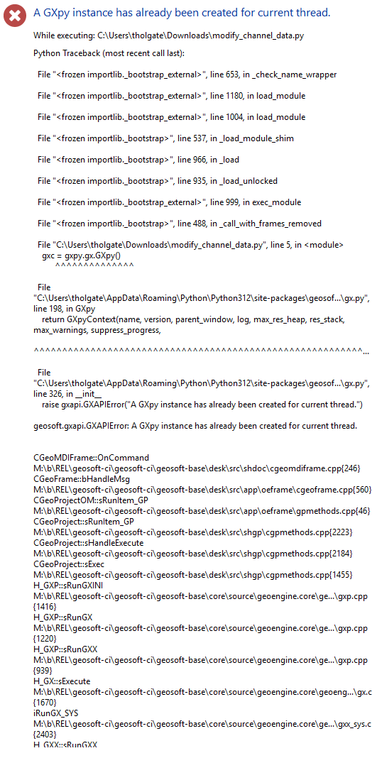 How to fix the "A GXpy instance has already been created for current thread" in Oasis Montaj